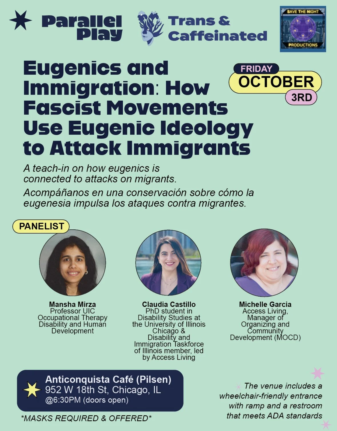 Trans & Caffeinated, Parallel Play and Save The Night Productions presents Eugenics and Immigration: How Fascist Movements Use Eugenic Ideology to Attack Immigrants